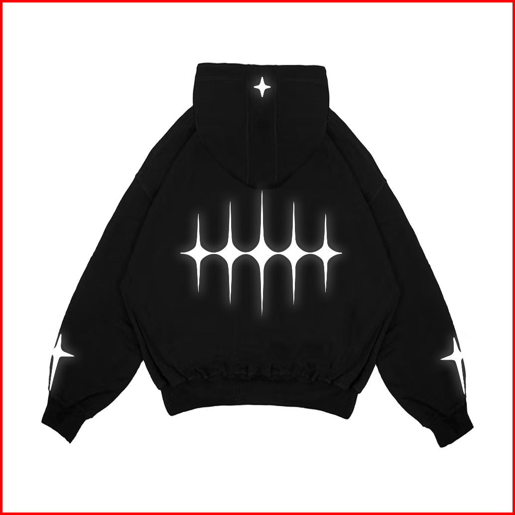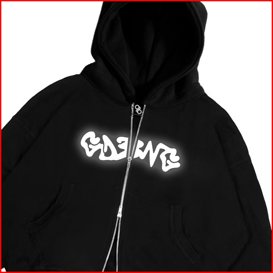 Gadabang Boxy Hoodie Double Zipper Oversize Menyala Sablon Reflective Gdbng Hitam