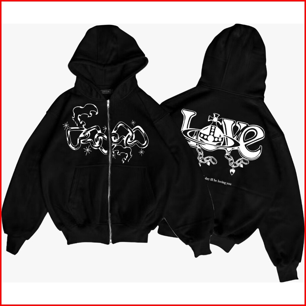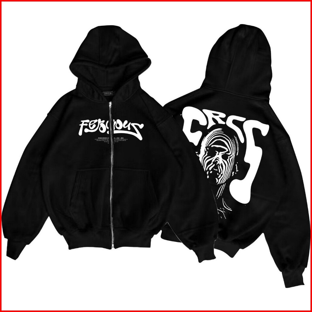 Hoodie Boxy Zipper Black Frcs Eternity Basic - Jaket Hitam Sleting Skena Boxy Oversize Terbaru Pria Wanita Katun Flacee