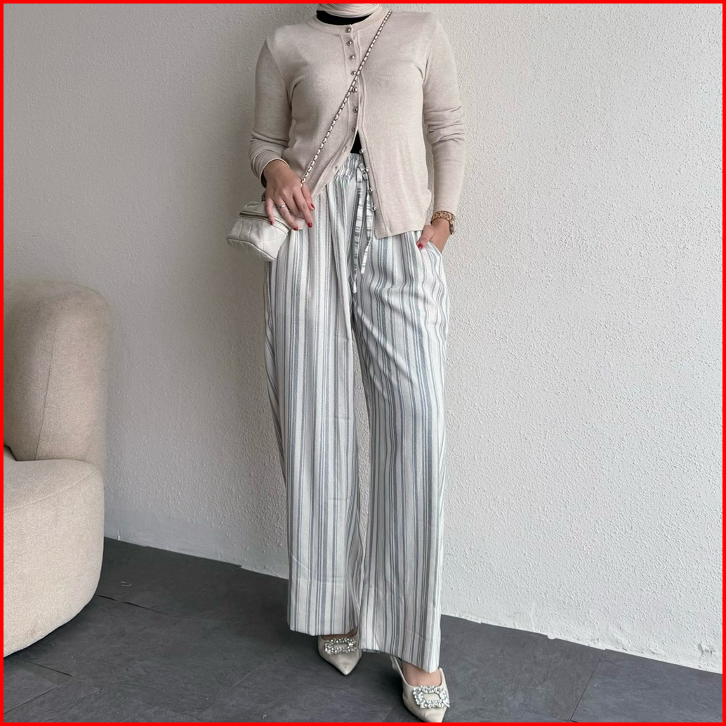 Floral Id - Celana Panjang Wanita Obi Stripe Kulot Loose Pants Bohe Style