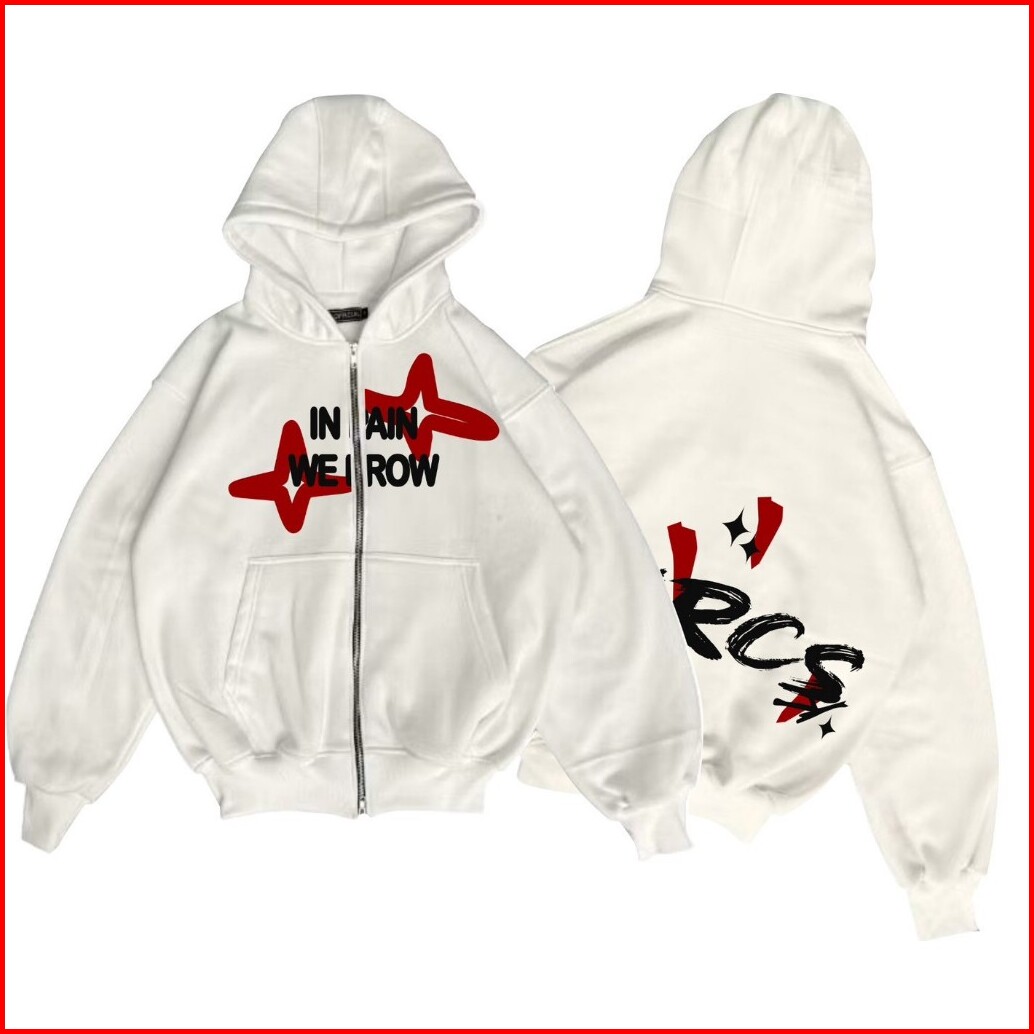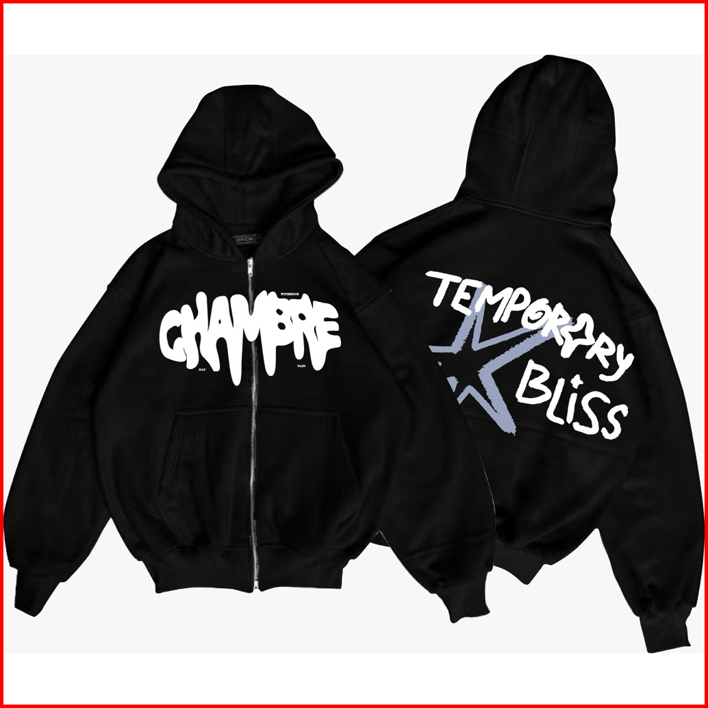 Hoodie Zipper Boxy Warna Hitam Full Tag Bordir Timbul Sweater Terlaris