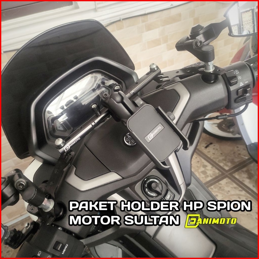 Holder Rotasi Hp Motor Paket Spion Stang Nmax Neo Turbo Vario 160 Scoopy Beat Street Genio Aerox Pnp