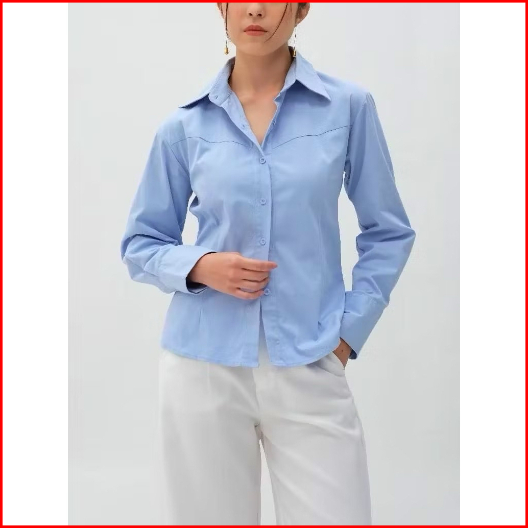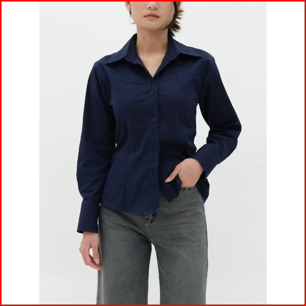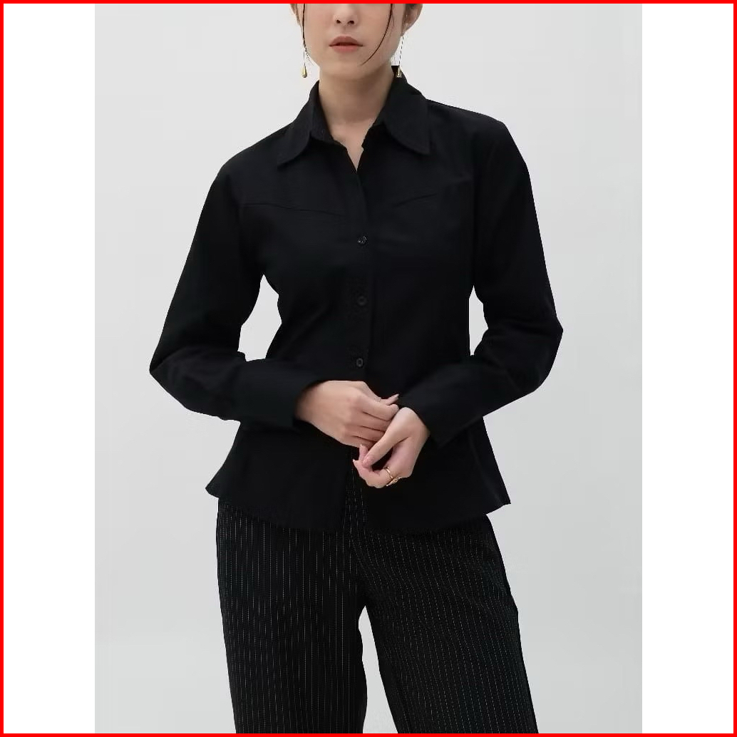 Katherine Shirt Kemeja Fitted Wanita Wispie Slimfit Polos Atasan Kantor Casual Basic Korean Style Fit Body