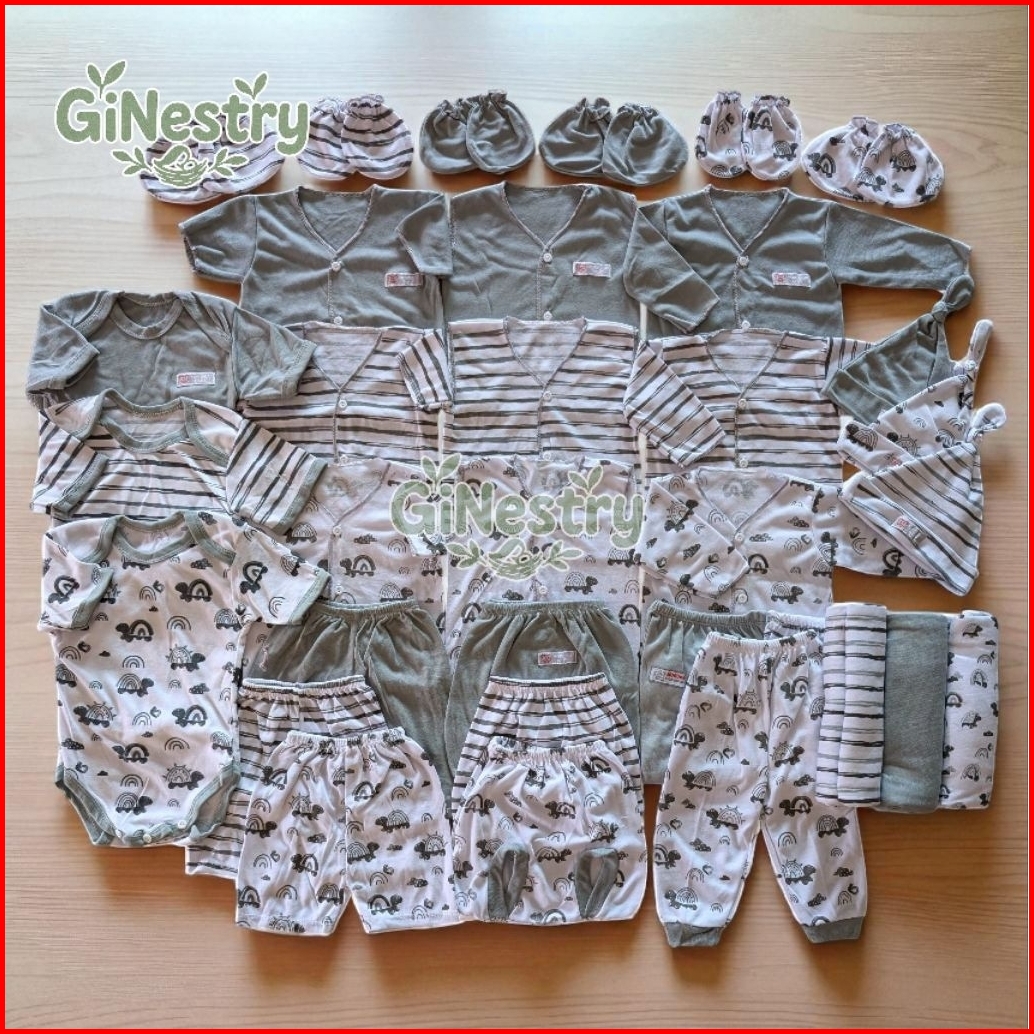 Ginestry 39 Pcs Set Baju Newborn 0-3 Bulan Perlengkapan Bayi Baru Lahir Abu Paket Brojol Hemat Sni