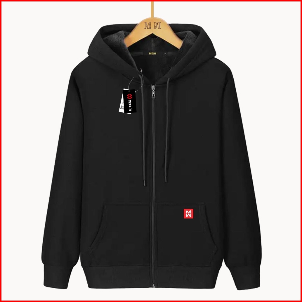 Mawa.co - Jaket Zipper Polos Resleting Bahan Tebal Hitam Jaket Pria Wanita