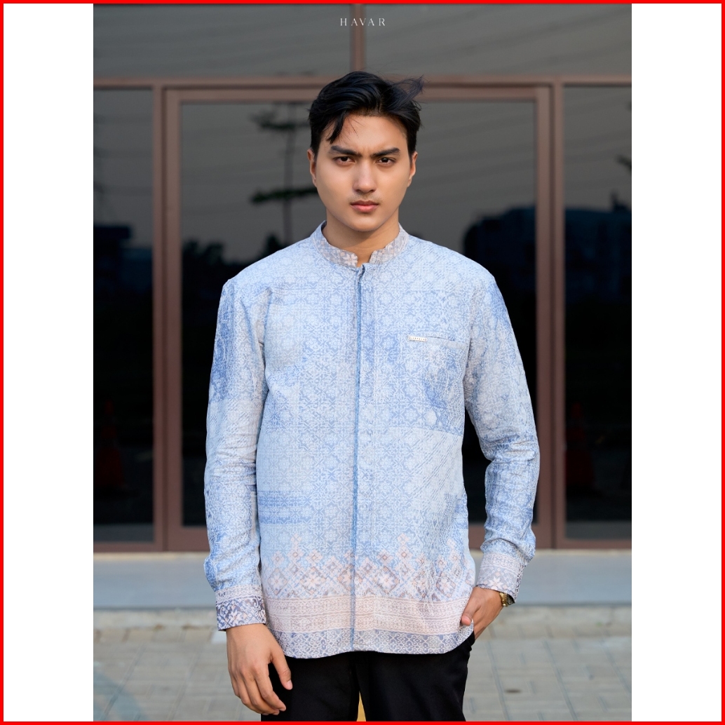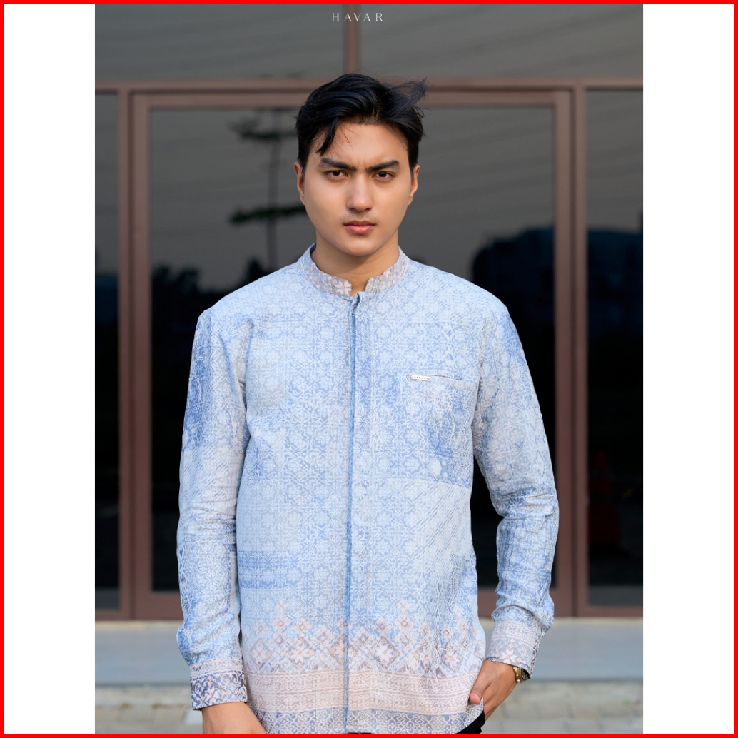 Havar Affan Blue Kemeja Koko Muslim Premium Slimfit Lengan Panjang