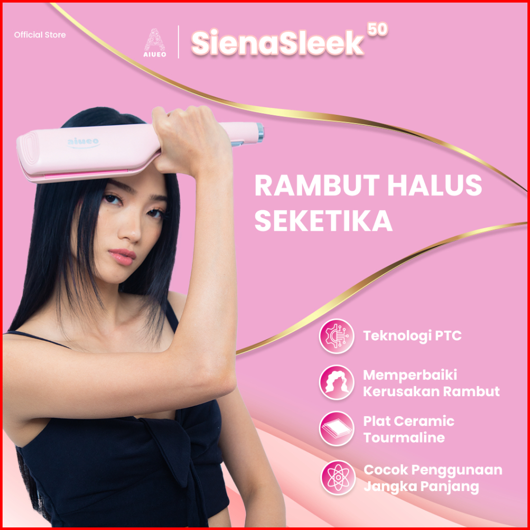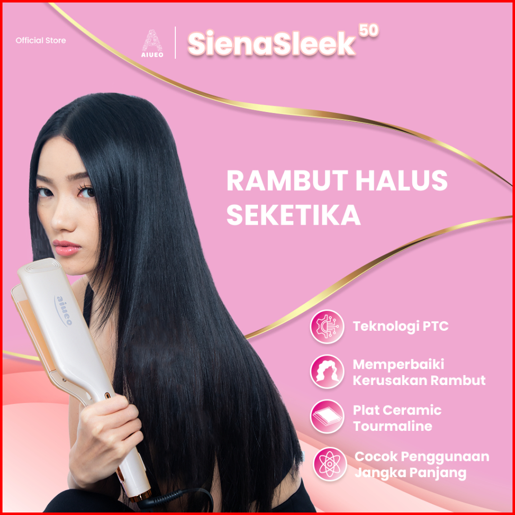 Aiueo Catokan Rambut Sienasleek50 Plat Lebar 50mm Ceramic Tourmaline Panas Cepat Anion Anti Kusut Garansi 18 Bulan