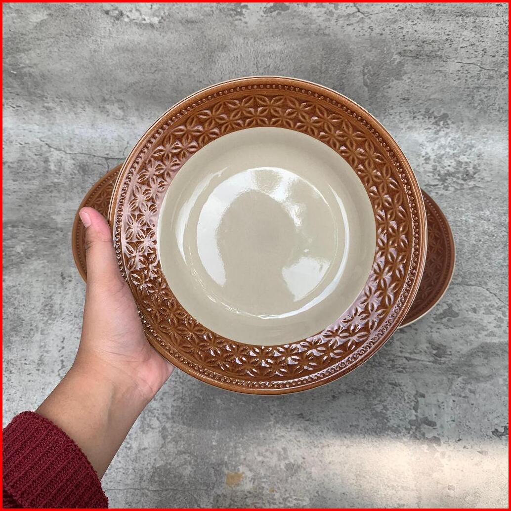 6 12 Pcs Piring Keramik Batik Kawung - Piring Makan - Piring Beling