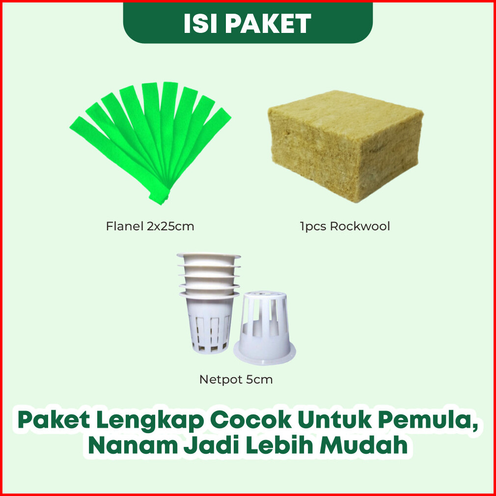 Infarm - Paket Media Tanam Hidroponik Paket Lengkap Media Tanam Rockwool Netpot 5cm Foodgrade Flanel Paket Starter Kit M