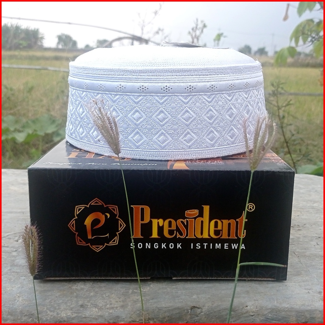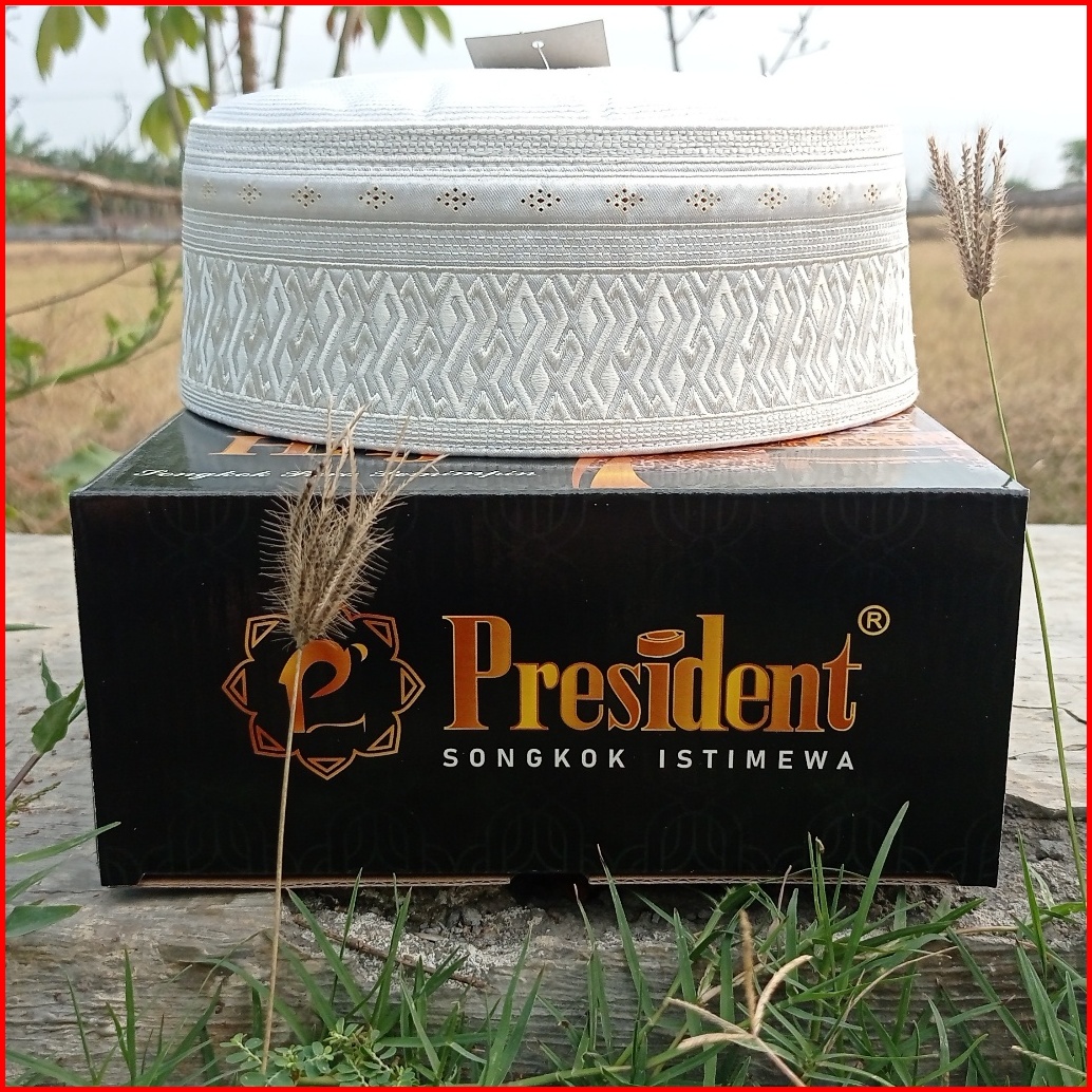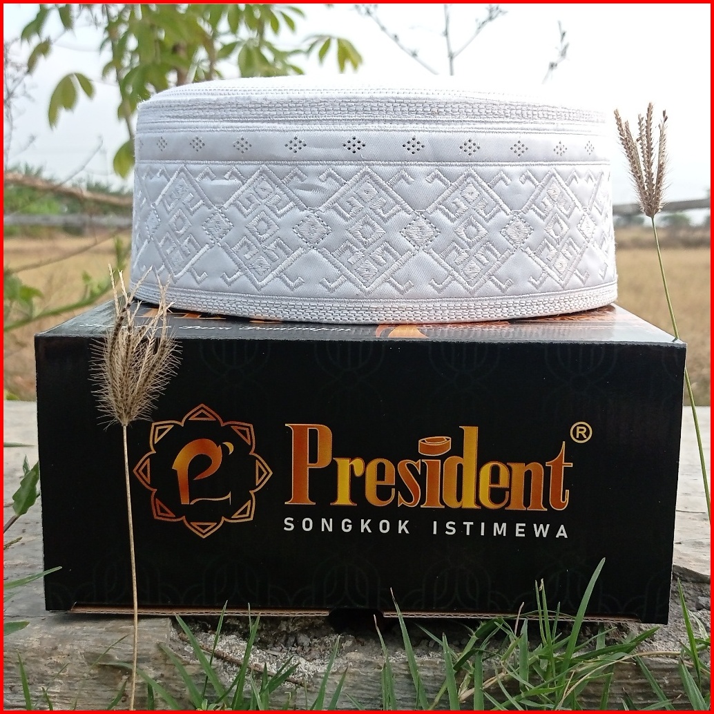 Peci Haji Putih President Satin Premium Bordir Tahan Lama Original