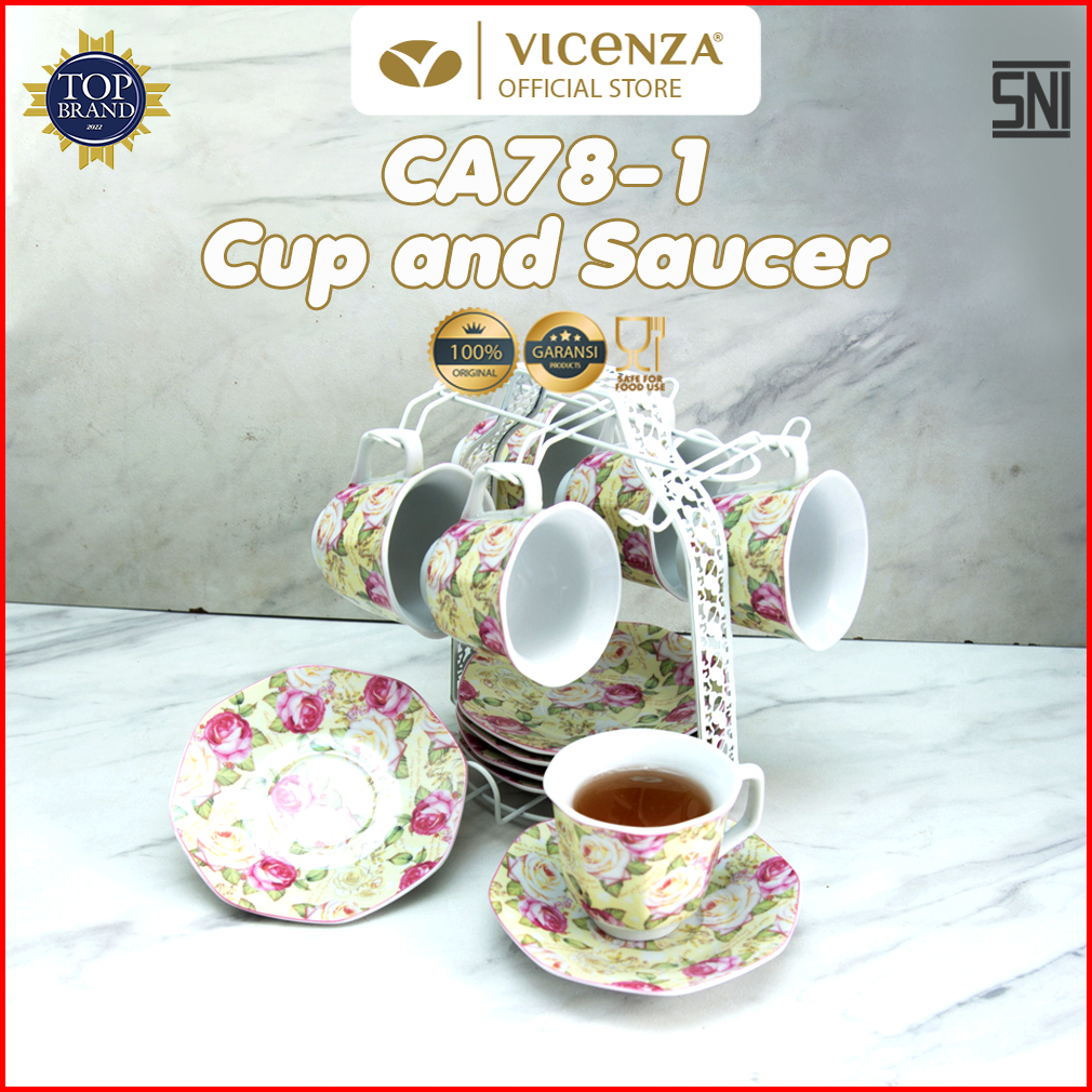 Vicenza Cangkir Set Porselen Segi Delapan Ca78-1
