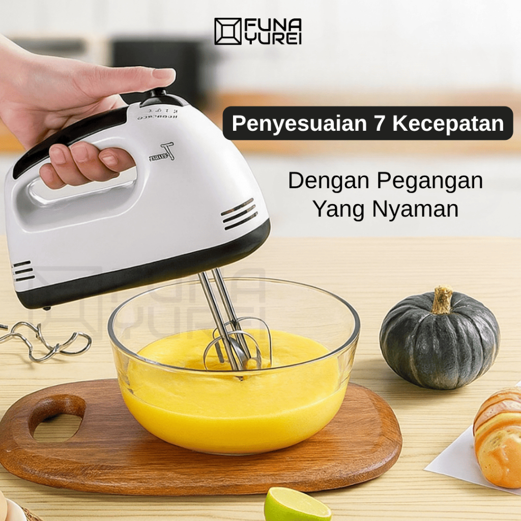 FUNAYUREI C6 Hand Mixer Elektrik 7 Kecepatan – Alat Pengocok Telur & Adonan + Bonus 2 Pengaduk