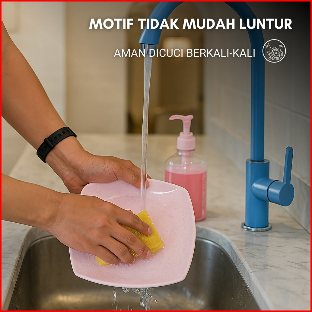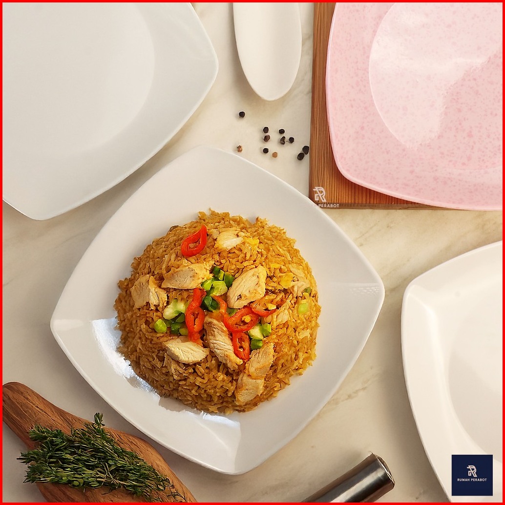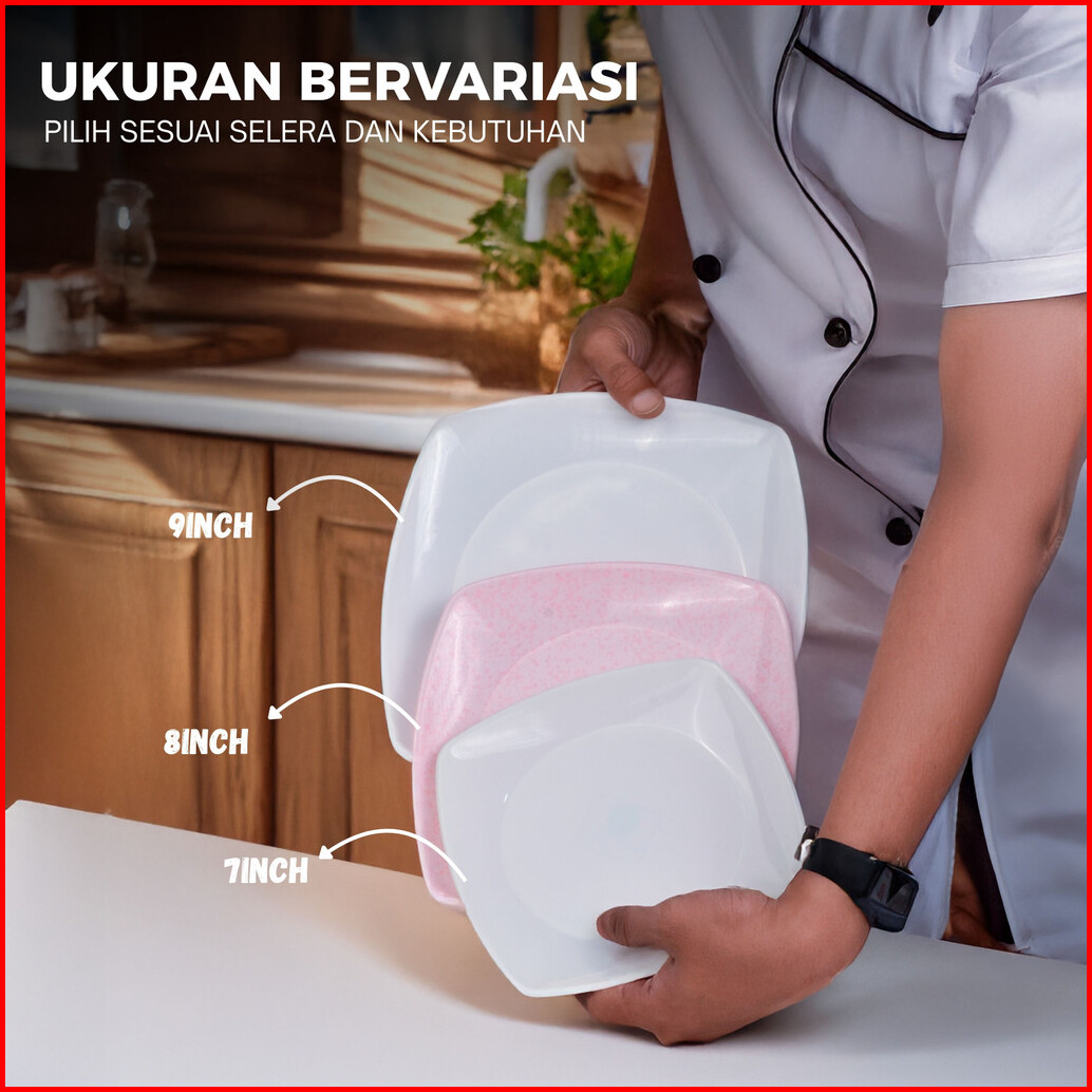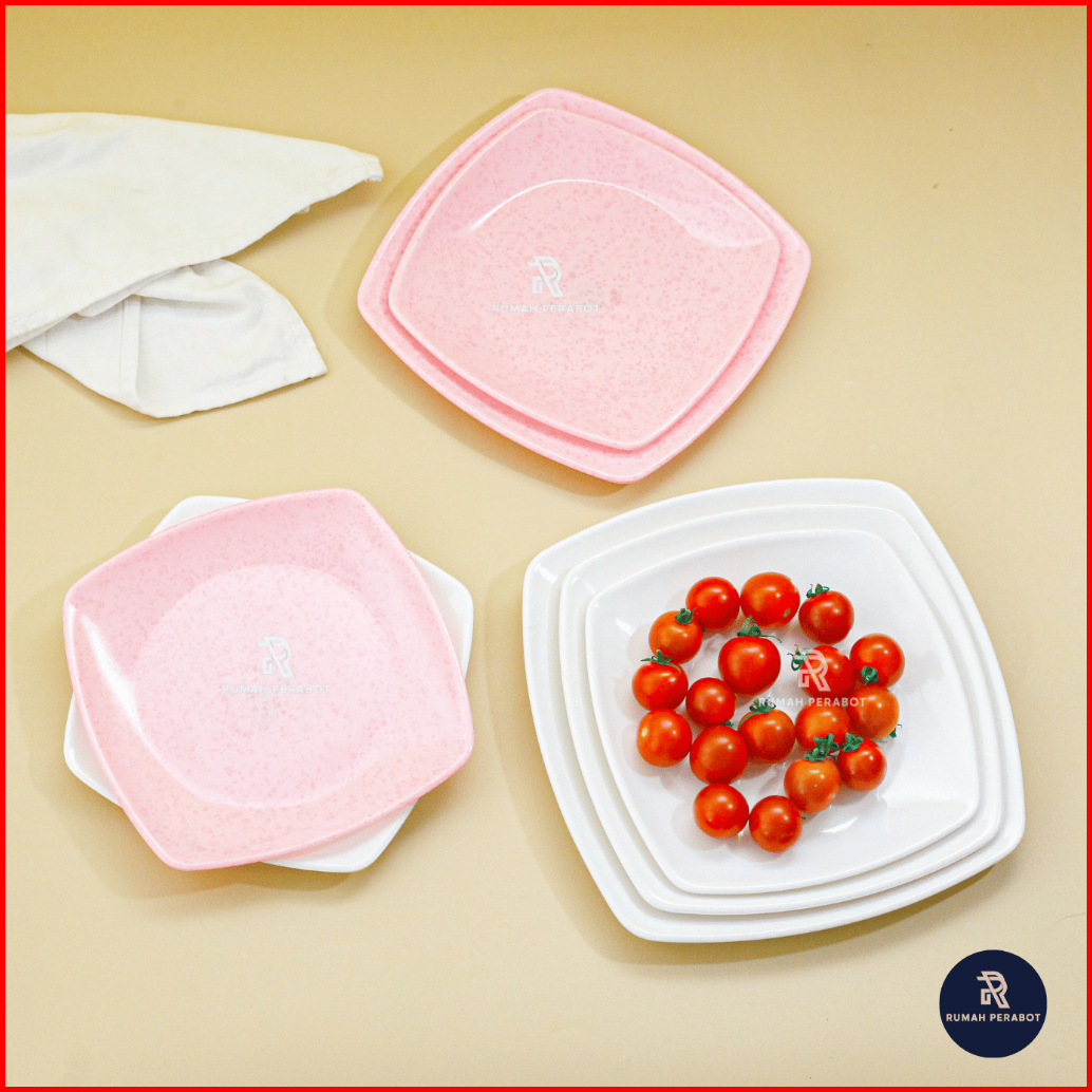 Piring Saji Persegi Melamin Extra Tebal Elegan Mewah Piring Kue Ala Hotel Putih Dan Soft Pink