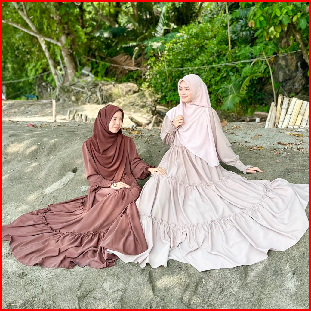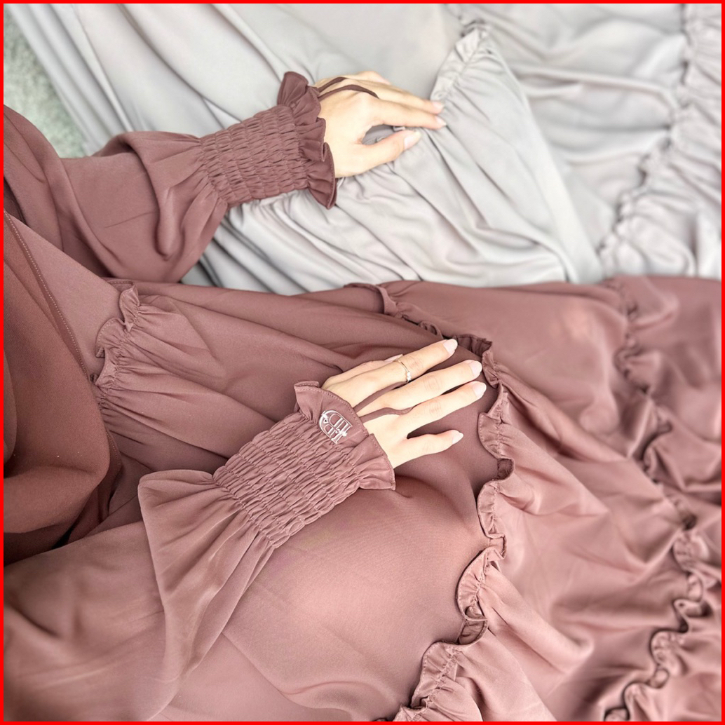 Hijabbydara - Takia Dress Ruffle Korean Dress Bahan Asheera Anti Uv Gamis Lebar Mayung Mewah Wanita Muslim Remaja Dewasa