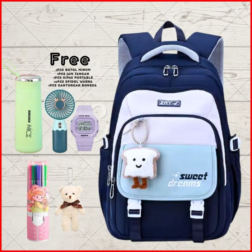 Tas Ransel Sekolah Anak Perempuan Sd Smp Sma Wanita Premium Besar Banyak Bonus Anti Air Waterproof