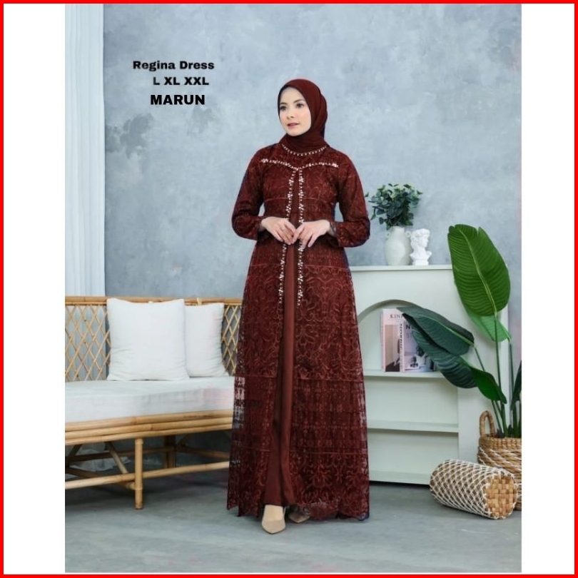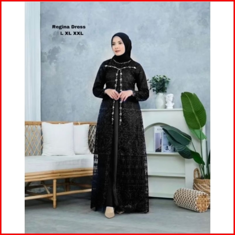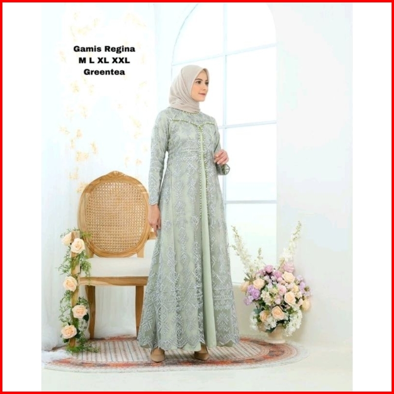 Regina Dress Lebaran Kondangan L Xl Xxl Premium Jumbo Mewah Gamis Muslim Produk Terbaru Milo Taro Rosegold Hitam Sage
