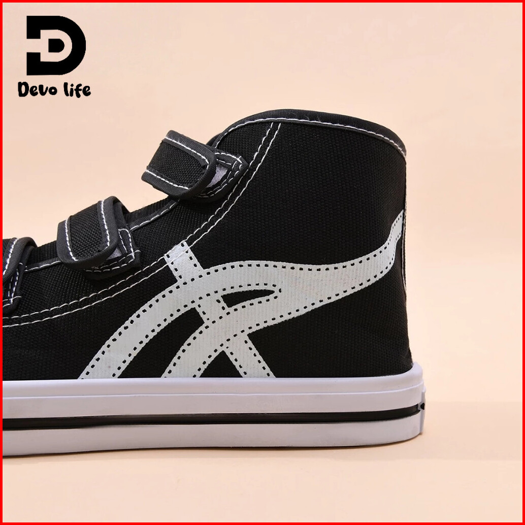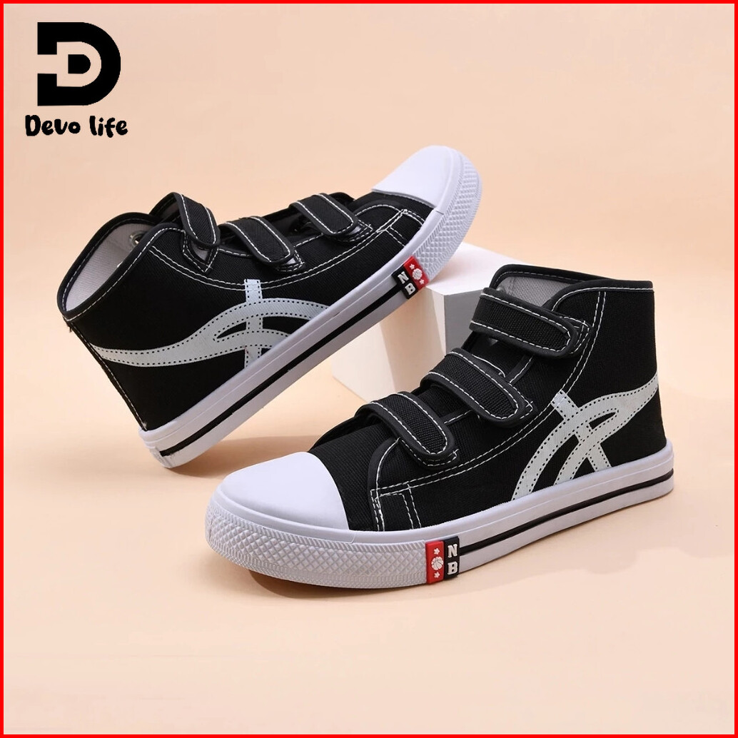 Devo Life - Sepatu Sekolah Sneakers Kanvas Tinggi Hitam Anti Slip Sol Jahit Nyaman Velcro