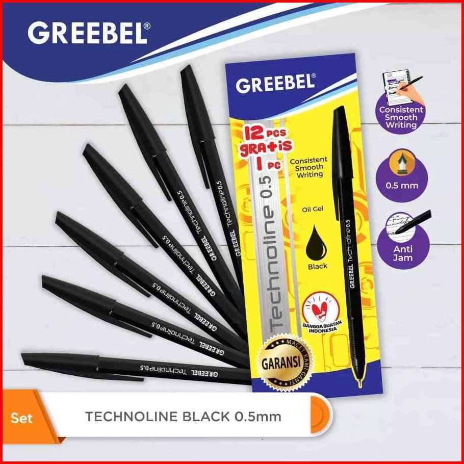 Original 100 Indonesia Pulpen Greebel Technoline 0 5mm 1 Pack Isi 12 Pcs Bonus 1 Pcs