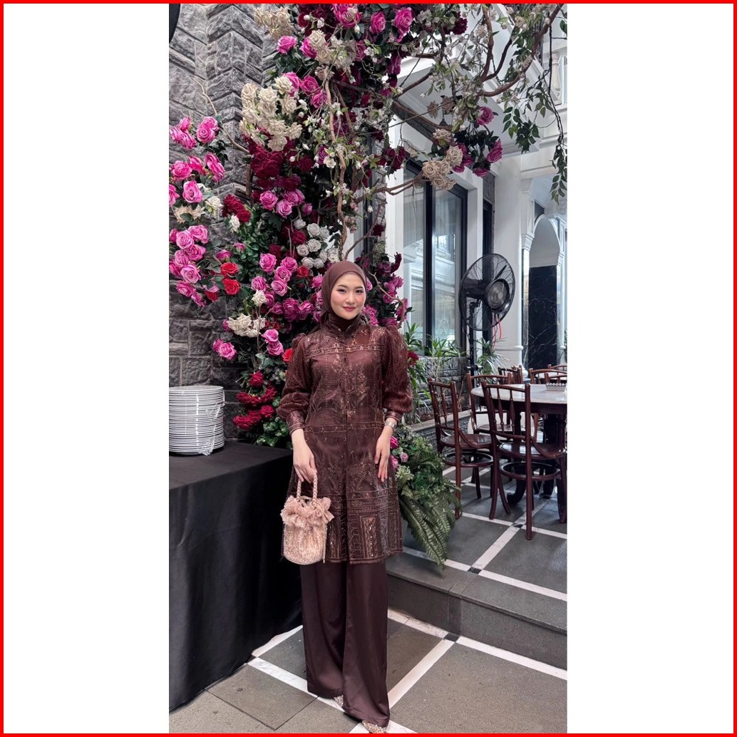 Rania Set Tunik Celana Oneset Brukat Premium Setelan Kondangan Wanita Terbaru Dress Muslim Pesta