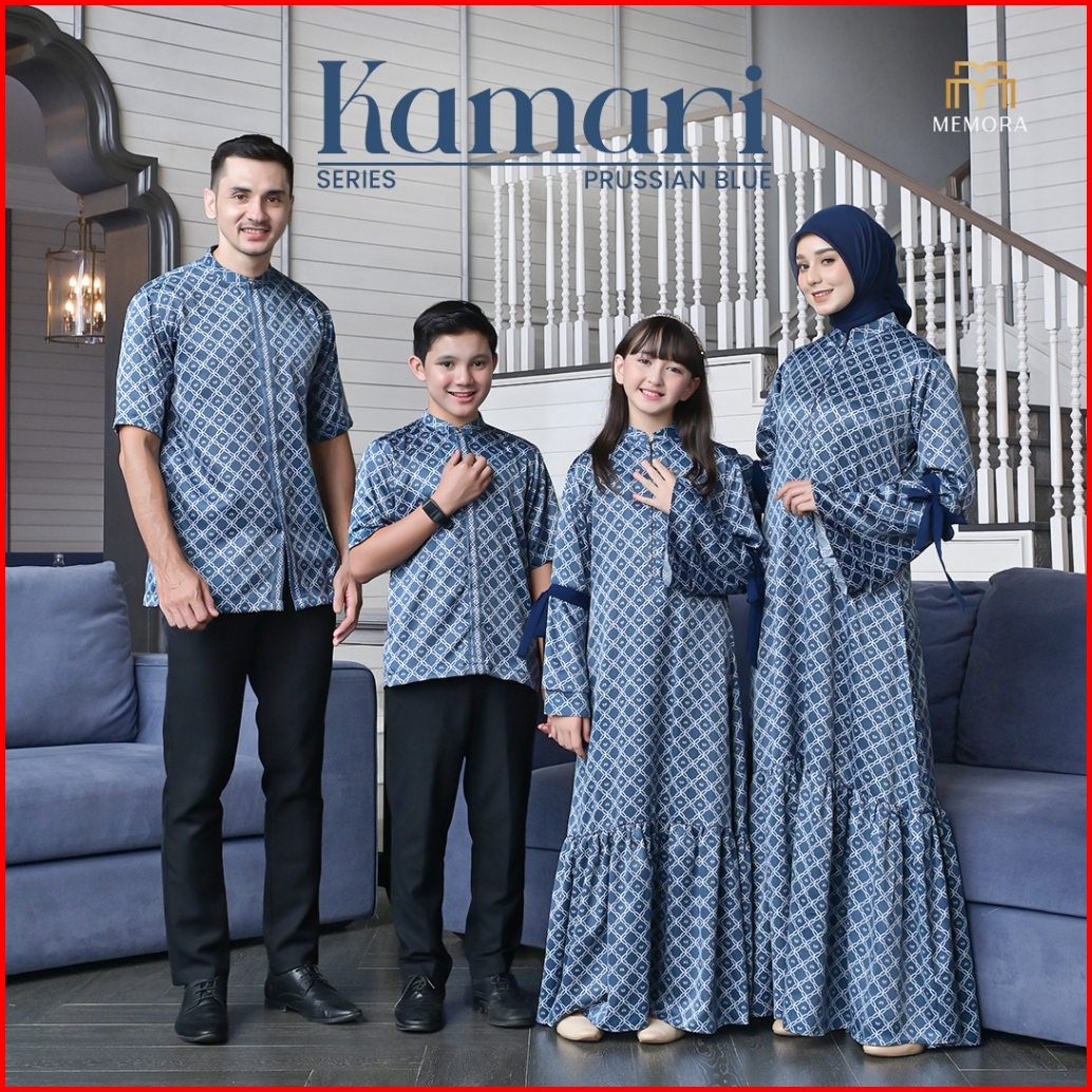 Baju Couple Pasangan Lebaran 2025 Series Kamari Prussian Blue By Memora - Baju Couple Keluarga Lebaran 2025 - Original A
