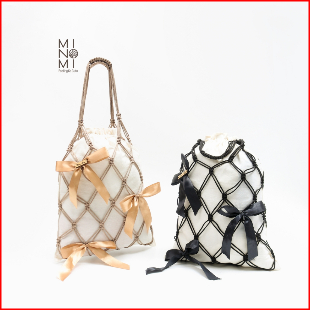 Tote Kanvas Crocehet Macrame Handmade Aesthetic Lily Bag