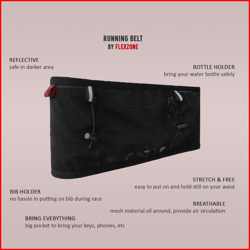 Flexzone Running Belt Sabuk Lari Fab-026 Sport Act Tas Lari Multifungsi Dengan 4 Kantong Aksesoris Olahraga