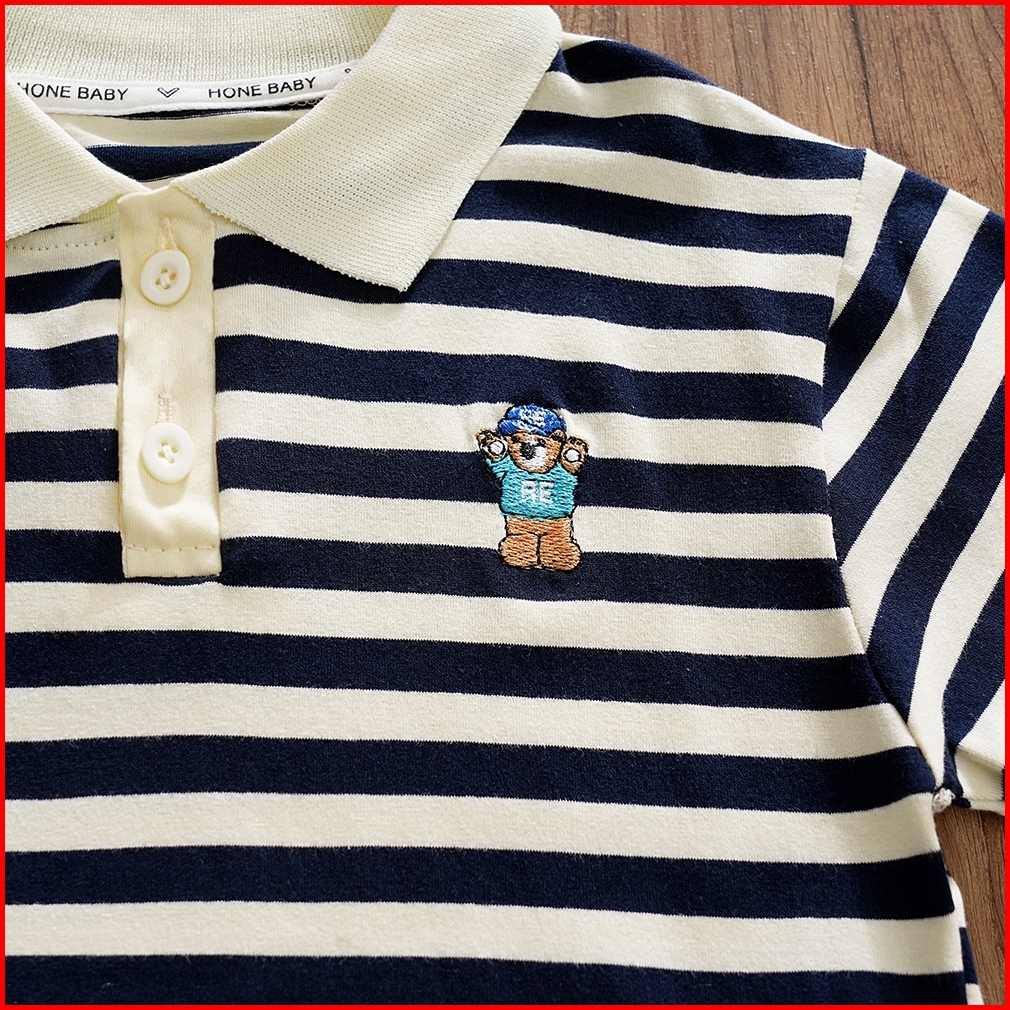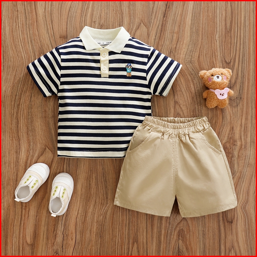Whalejoan- 2 Pcs Set Setelan Bayi Kemeja Polo Celana Pendek