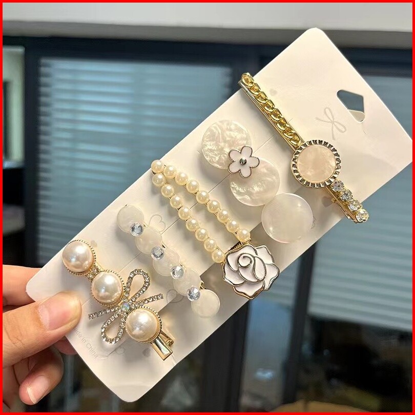 Jepit Rambut Mutiara 5 In 1 Jepitan Rambut Fashion Wanita Dewasa Clip Set Jepitan Hair Pin Gaya Korea Hiasan Rambut Mura