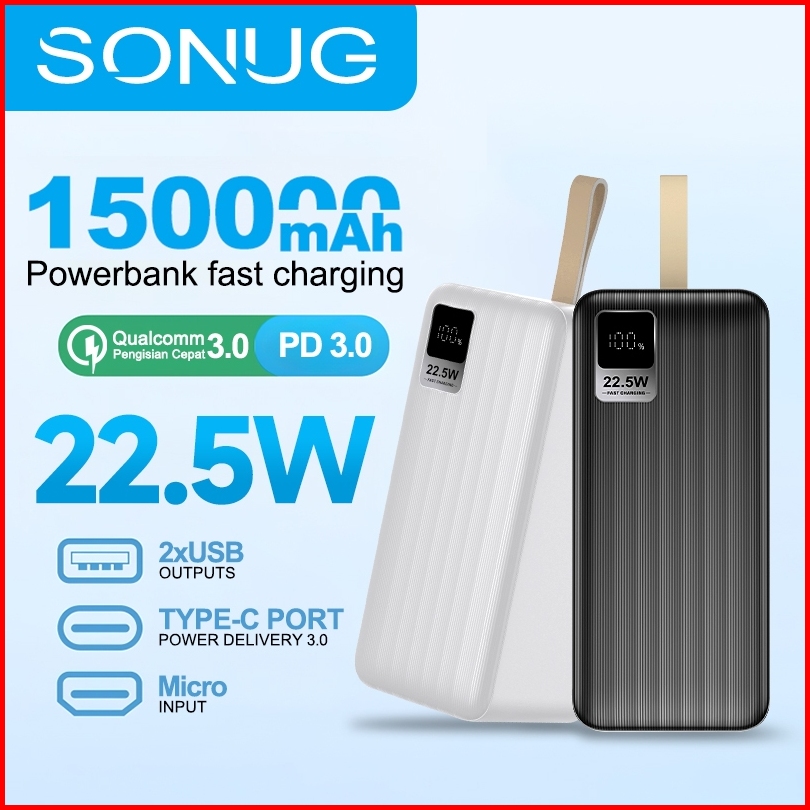 Sonug Powerbank 150000mah Original Type-c Dual Input And Output Port 22.5w Fast Charging Qc3.0 Dengan Led Digital Displa