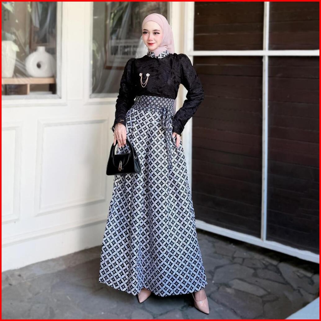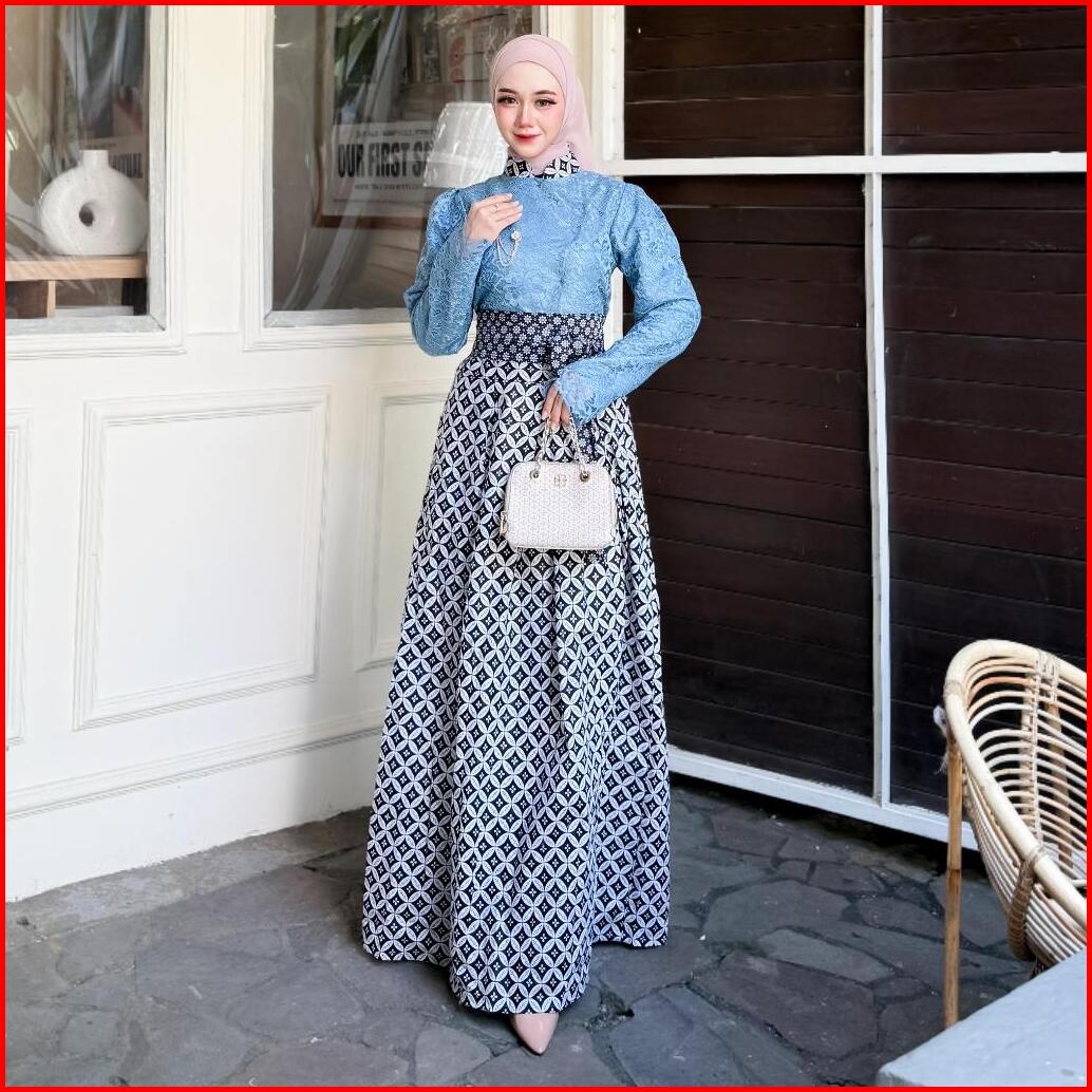 Dress Kebaya Janggan Brokat Kombinasi Batik Queenbee Fashion Wisuda Bridesmaid Free Bross Cantik