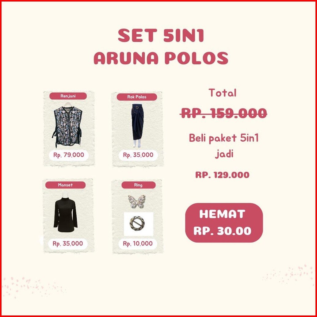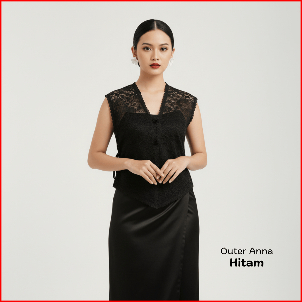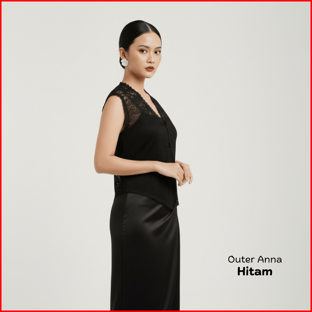 Paket 5in1 Oneset Vest Brukat Anna Outer Tile Garden Rok Lilit Satin Polos Baju Kondangan Wanita Hitam Setelan