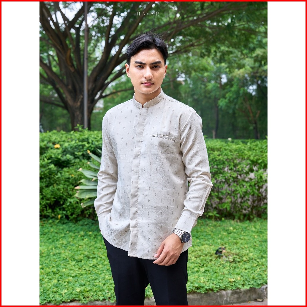 Havar Awwam Cream Kemeja Koko Muslim Premium Slimfit Lengan Panjang