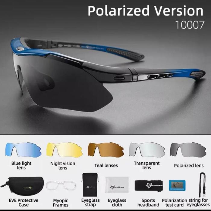 KACAMATA SEPEDA / OLAHRAGA ROCKBROS 10003 ORIGINAL POLARIZED 5 LENSA - MERAH