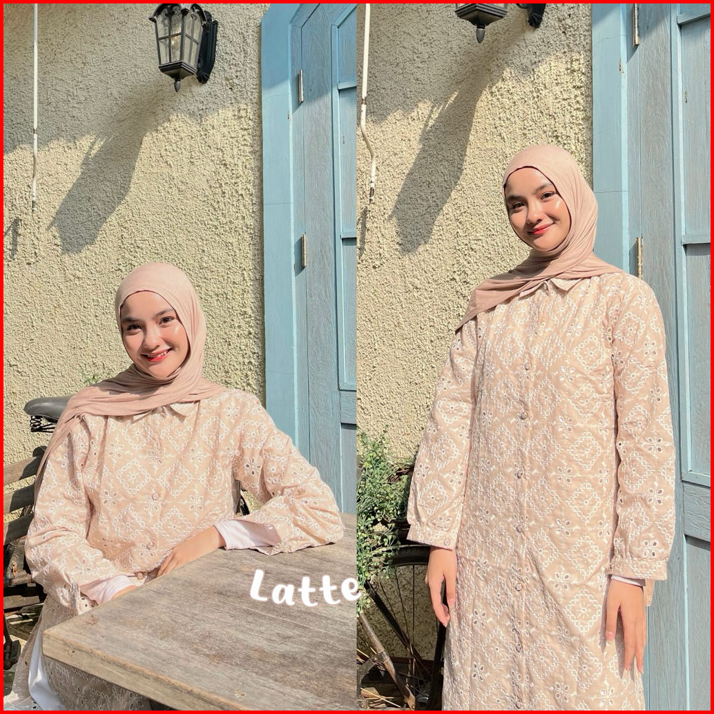 Naema - Mecca Long Tunik Embroidery By Naema Tunik Cotton Embroidery Tunik Kondangan Tunik Lebaran Dress Lebaran Midi Dr