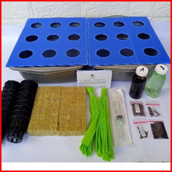 Paket Hidroponik Pemula Lengkap Murah 18 Lubang Tanam 2 Bak Sistem Wick Mini Hidroponik