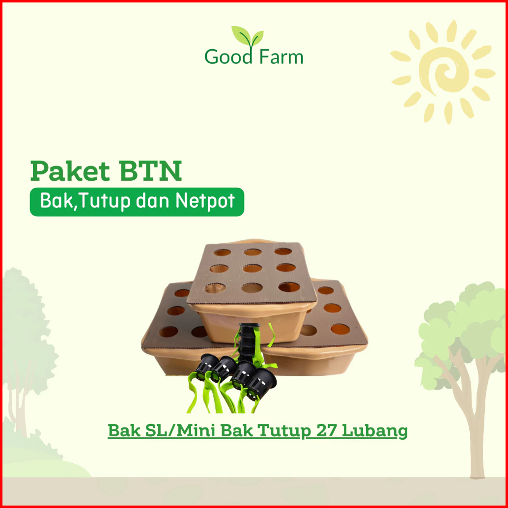 Goodfarm - Paket Btn Bak Tutup Dan Netpot Untuk Hidroponik Wick System Ukuran Sl 3 Bak 27lubang