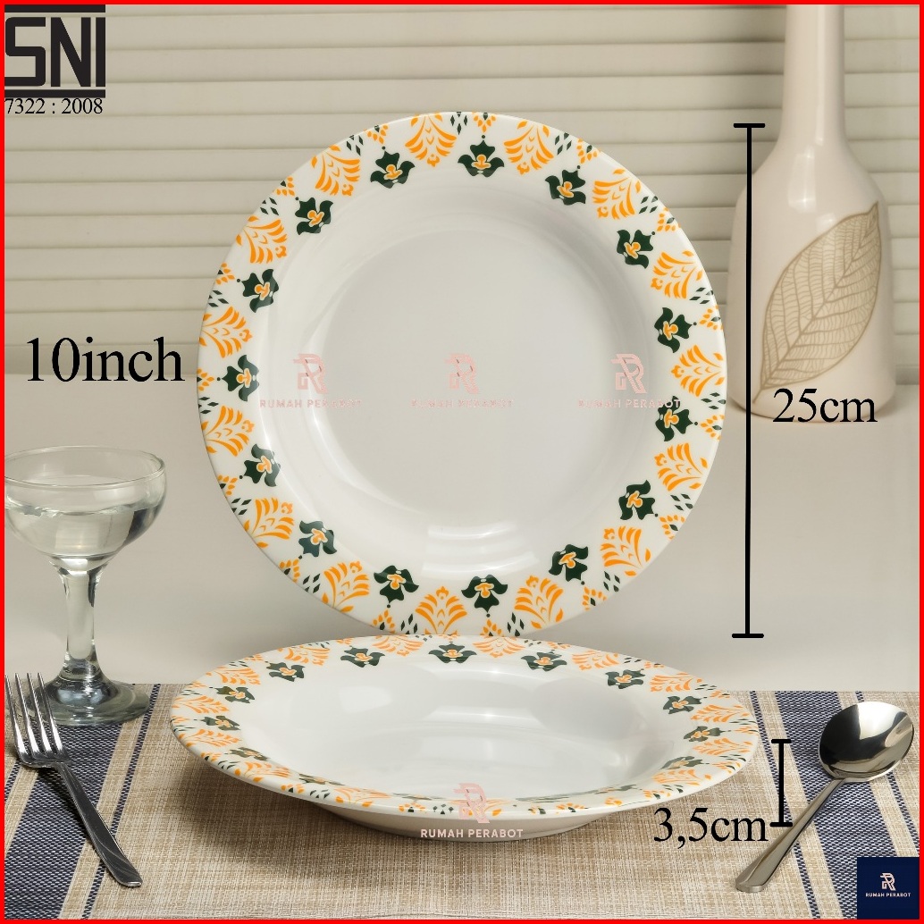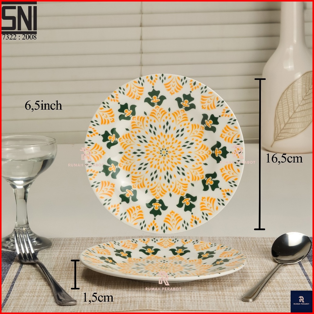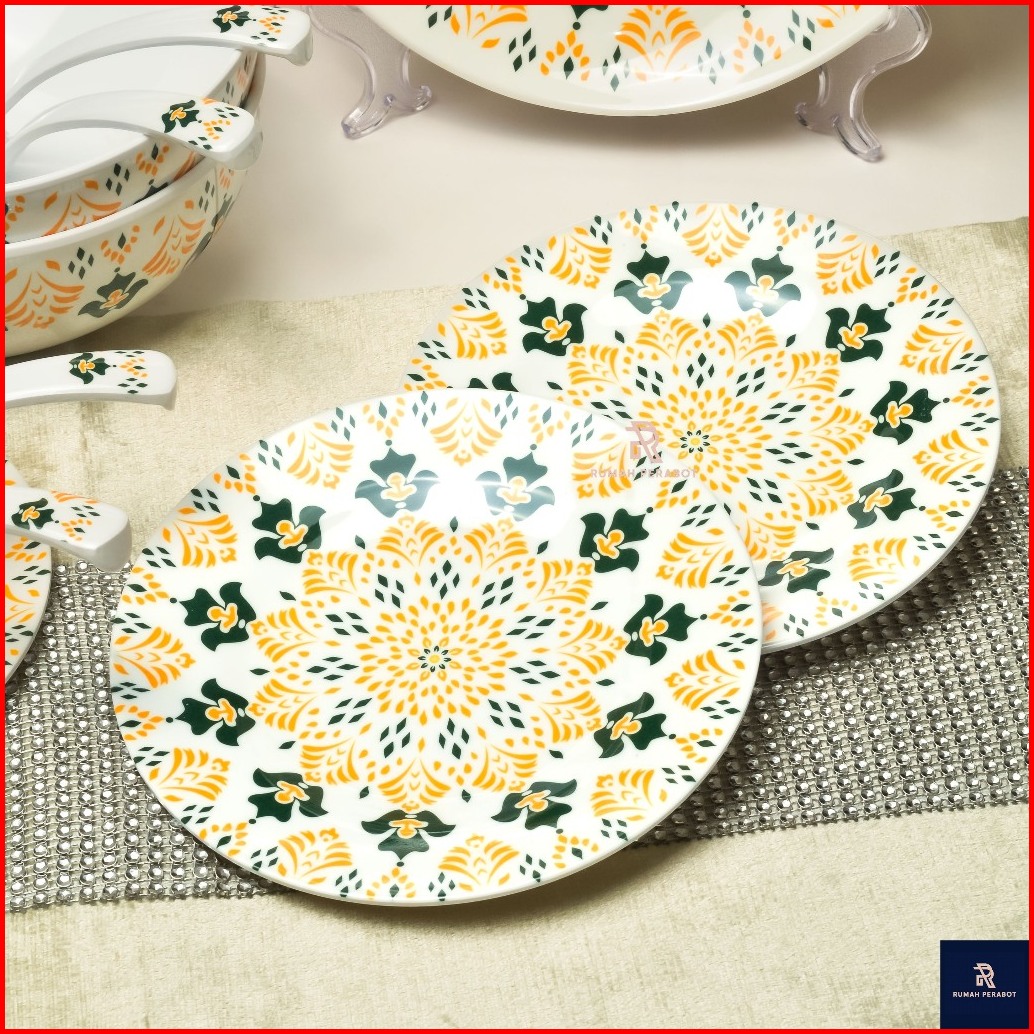 Piring Magkok Set Melamin Asli Motif Bunga Bohemian Hijau Mewah Tebal Bebas Bpa
