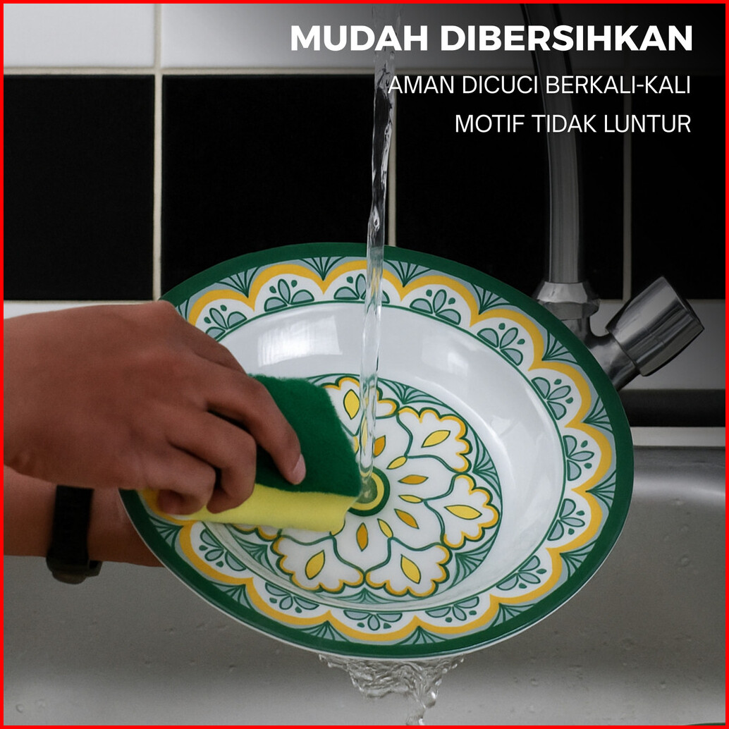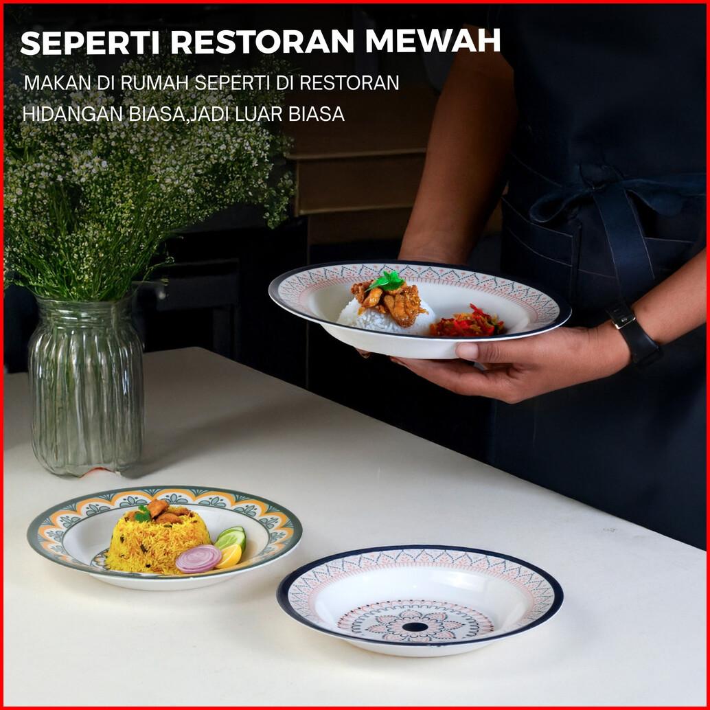 Piring Makan Melamin Motif Cantik Tidak Mudah Pecah Tebal Elegan