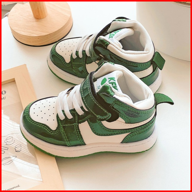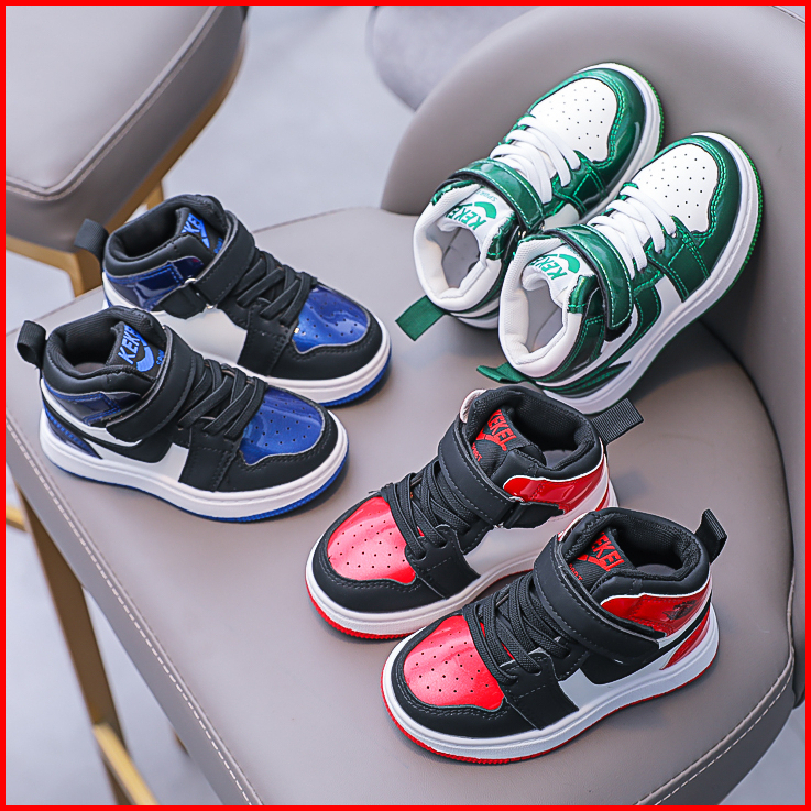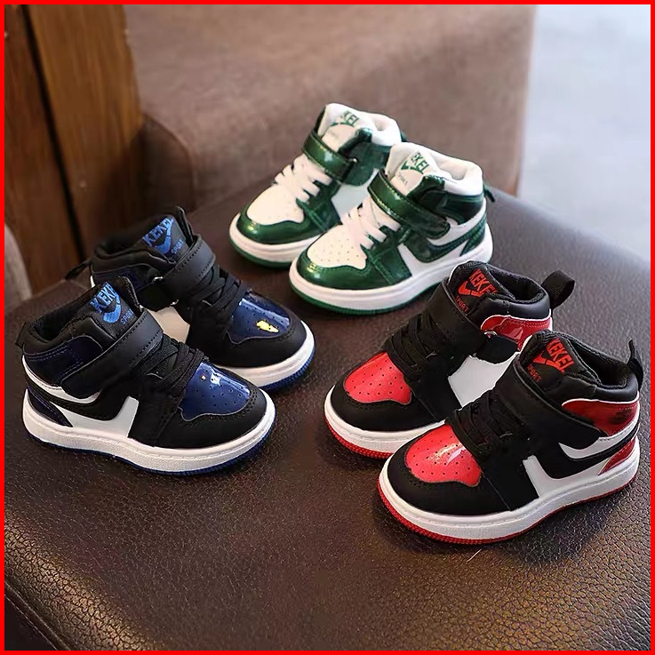Enjoystep - Sepatu Sneakers Anak Sport Glossy Alas Kaki Anak Warna Hitam Biru Hijau Premium Quality Import Fashion 1-3 T