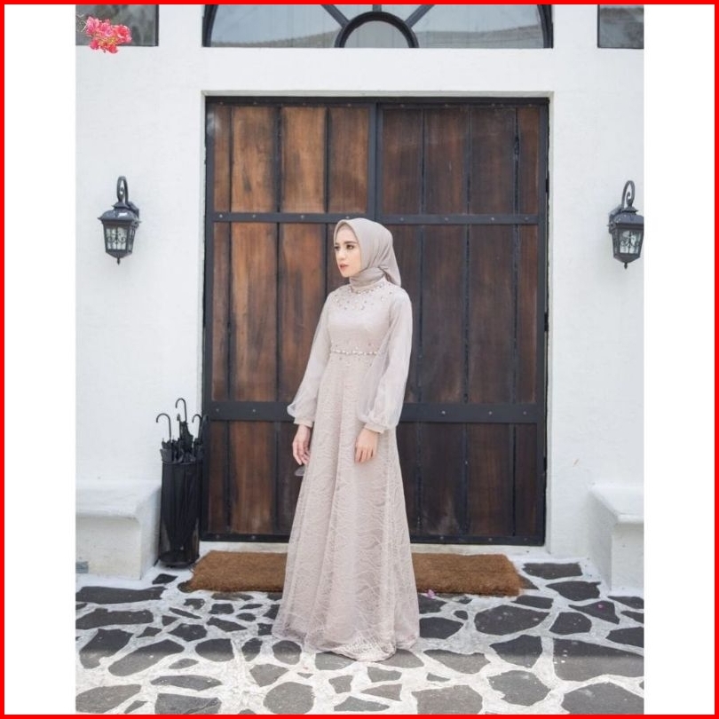 Dress Nadine Nadin Gamis Lebaran Terbaru Kondangan Brukat Maxi Pesta Lamaran Tunangan Kekinian Seragam Bridesmaid