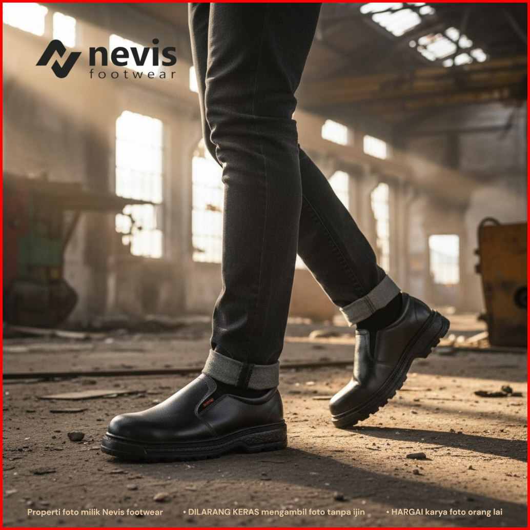 Nevis Asgard Sepatu Safety Slip On Pria Original 39-45 Ujung Besi Kerja Proyek Lapangan Sefty Shoes