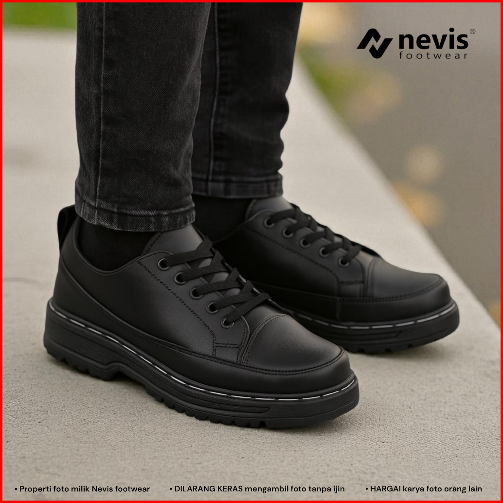Nevis Sepatu Pria Formal Marlo Black 39-45 Sepatu Gavi Kerja Kantor Hitam Docmart Shoes Pantofel