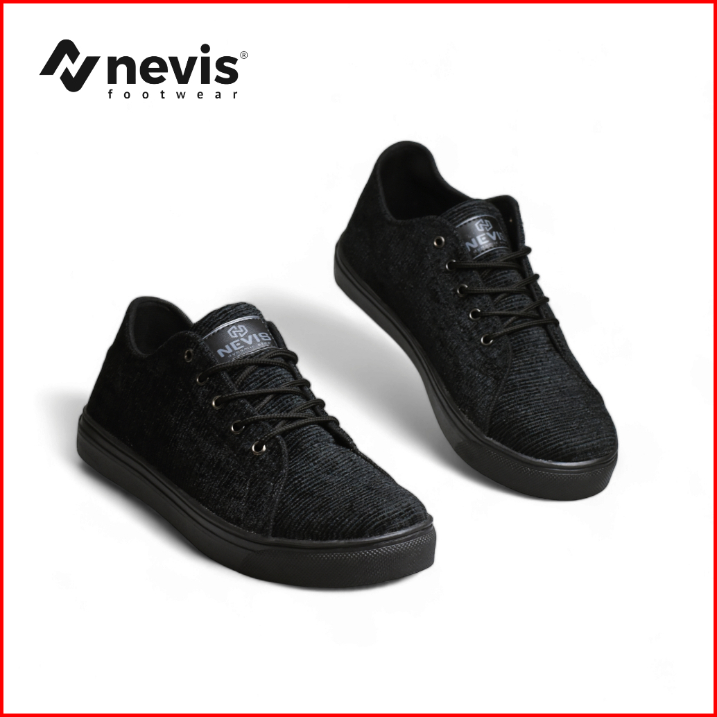 Nevis Sepatu Sneakers Casual Pria Wanita Nvs 27 Sekolah Kets Kasual Kerja Full Black Hitam Polos