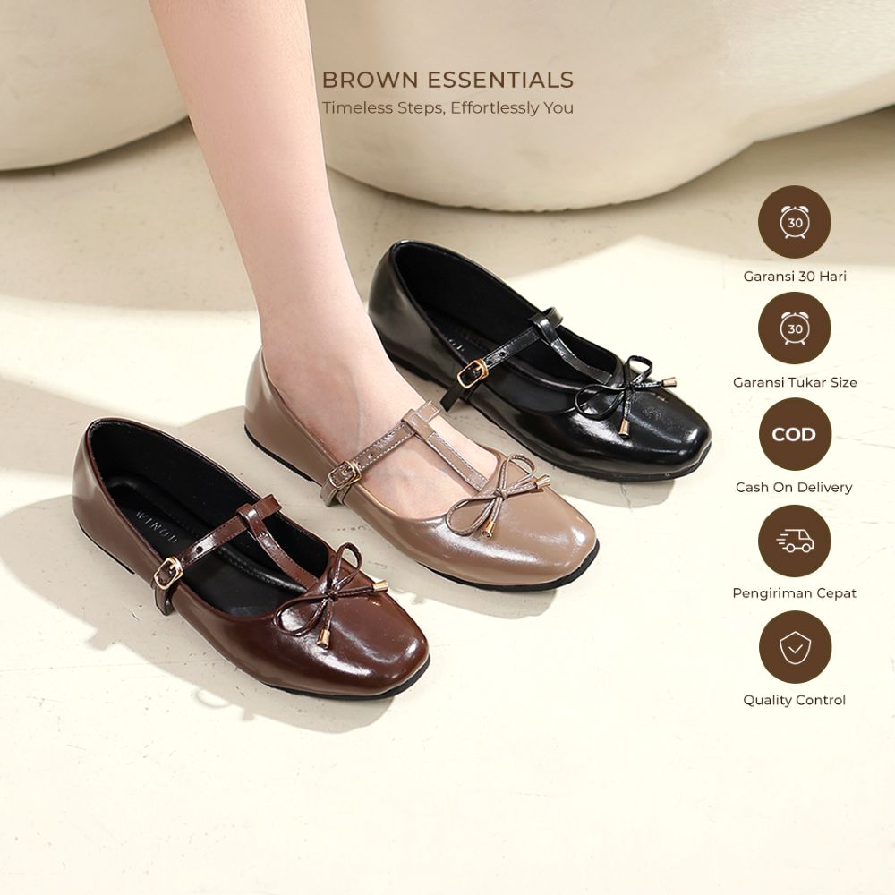WINOD Esca Sepatu Ballet Flatshoes Mary Jane Shoes Casual Brown Essentials Daily