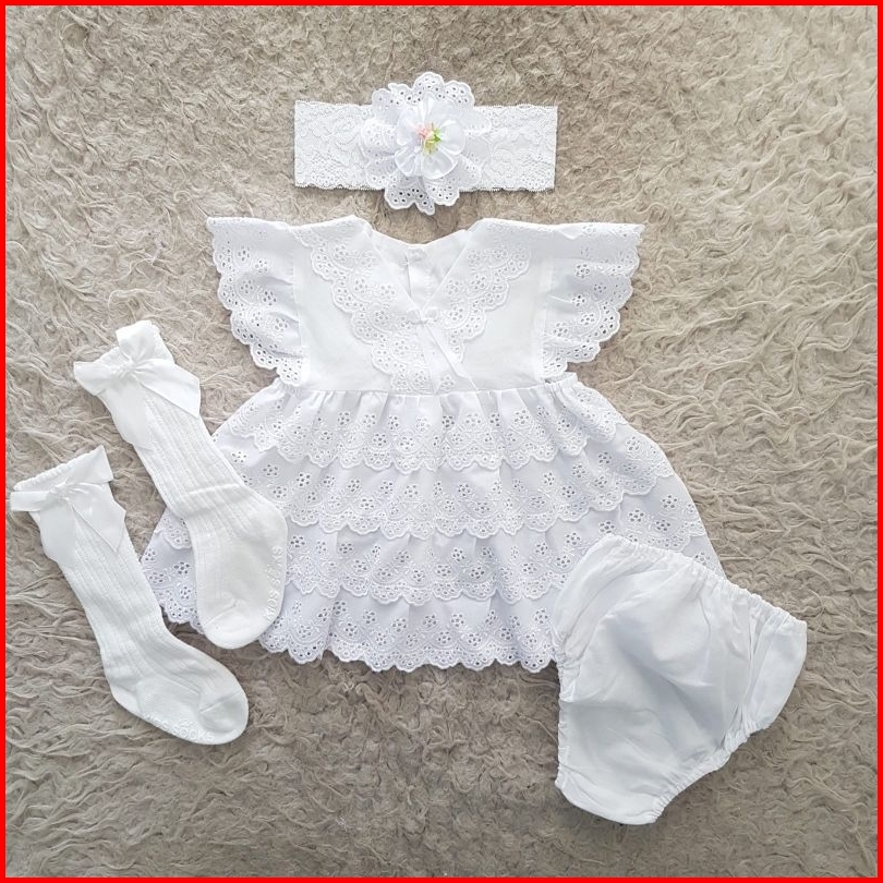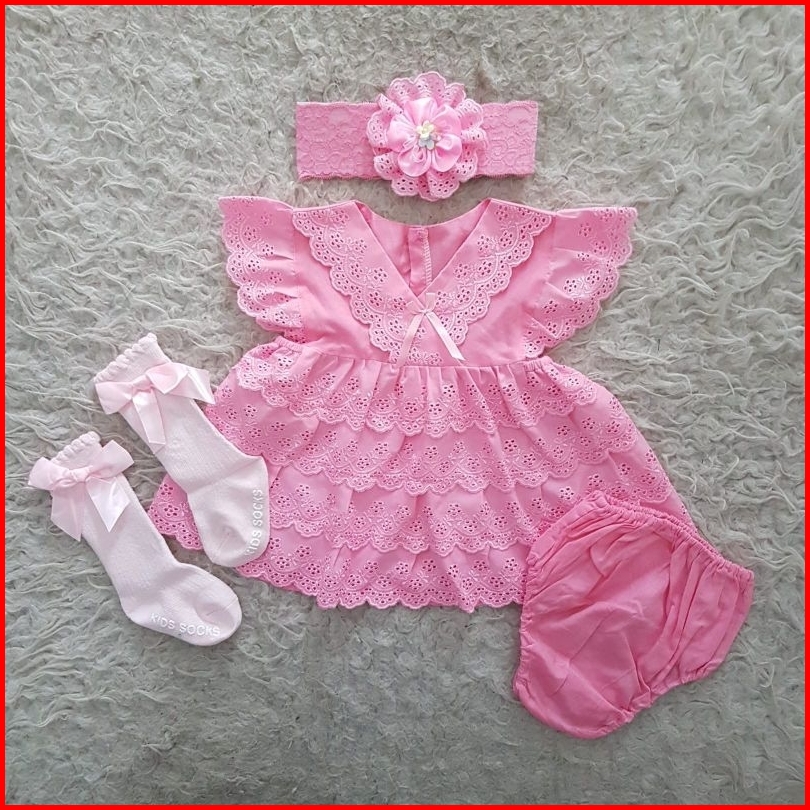 Newborn V Neck Baby Dress Termasuk Celana Baju Lucu Anak Perempuan