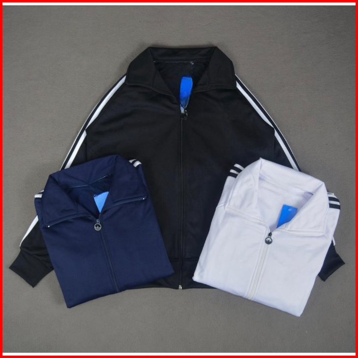 Jaket Tracktop Casual Pria Wanita Black Strip - Jaket Tracktop Polos