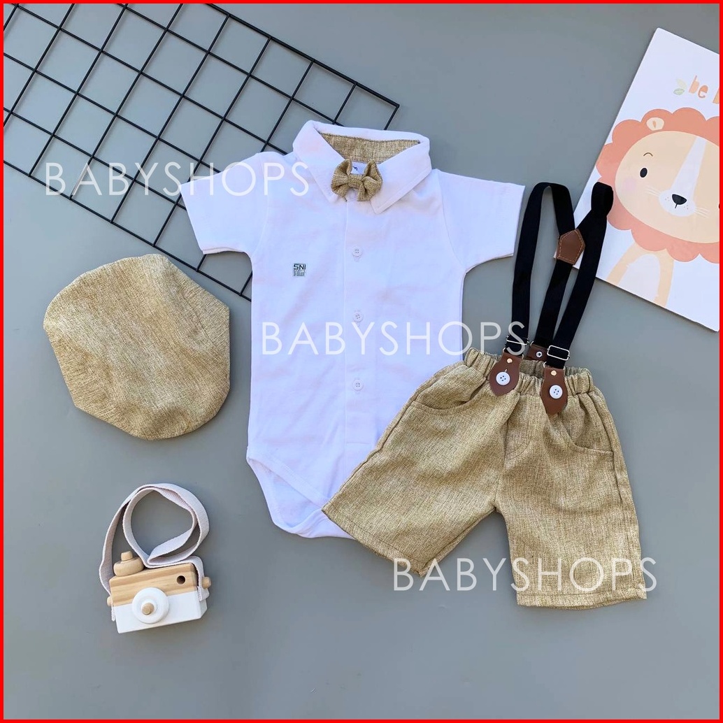 Babyshop- Baju Setelan Bayi Laki Laki Suspender Bahan Adem Untuk Pergi Jalan Ke Mall Murah Bestseller Kekinian Untuk Bay