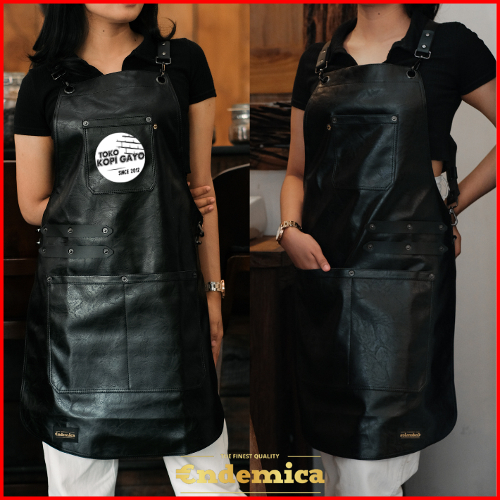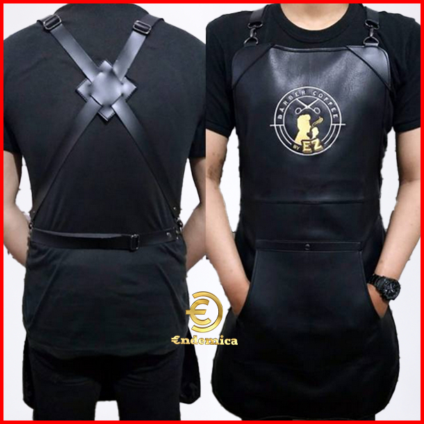 Apron Barista Celemek Barbershop Apron Cafe Celemek Cukur Rambut Full Premium Synthetic Leather Path Crossback Strep