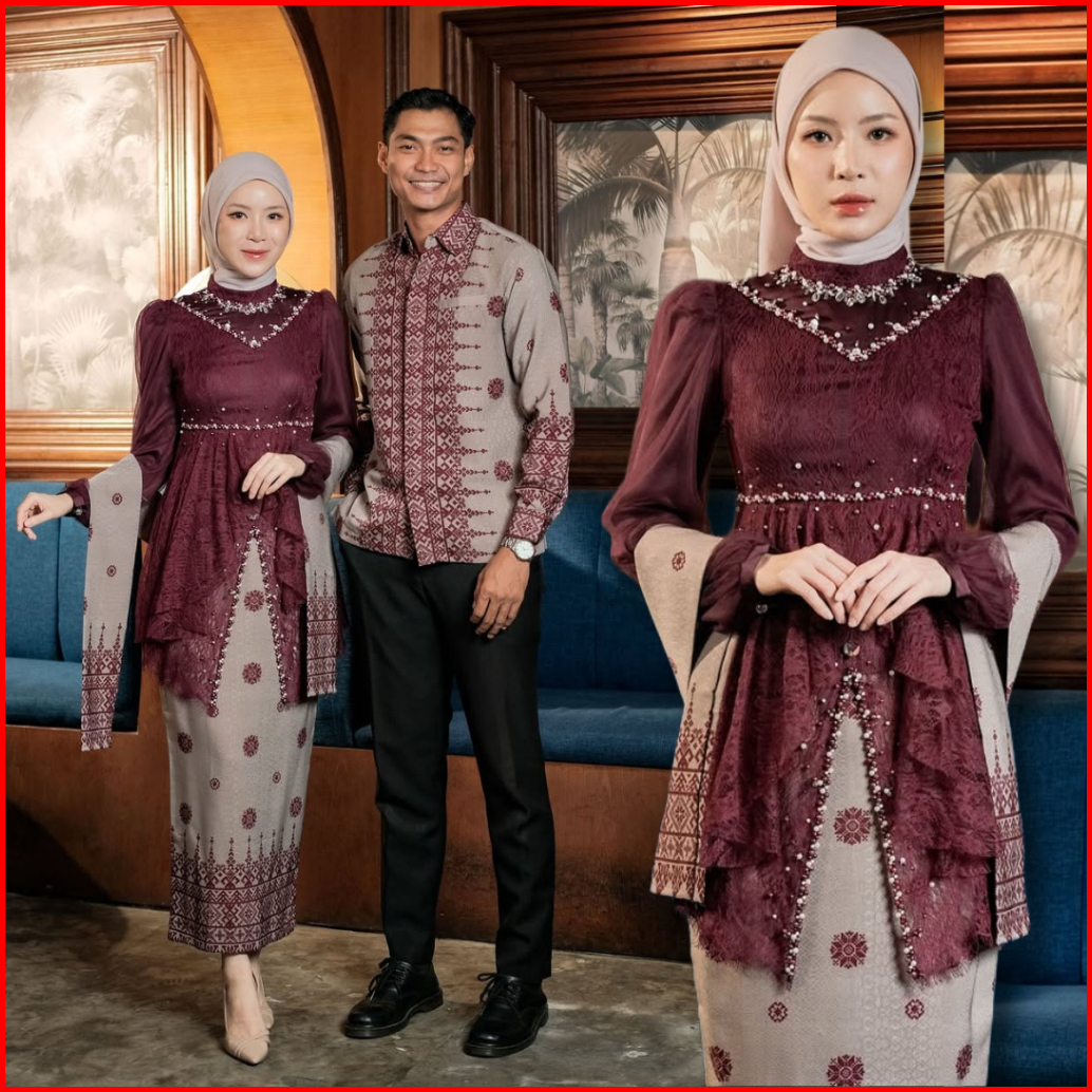 Set Couple Kebaya Ema Series Modern Wisuda Lamaran Tunangan Tunik Batik Baju Kondangan Terbaru 2025