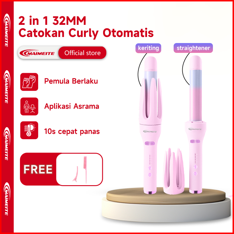 Maimeite Catokan Rambut Keriting Keramik Otomatis 2in1 32mm Hair Straightener - Curly Styler New Desain Elegant