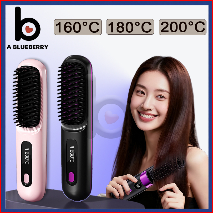 A Blueberry Sisir Catok Pelurus Rambut Elektrik Wireless Catokan Sisir Pelurus Rambut Electric Hair Comb Sisir Pelurus R